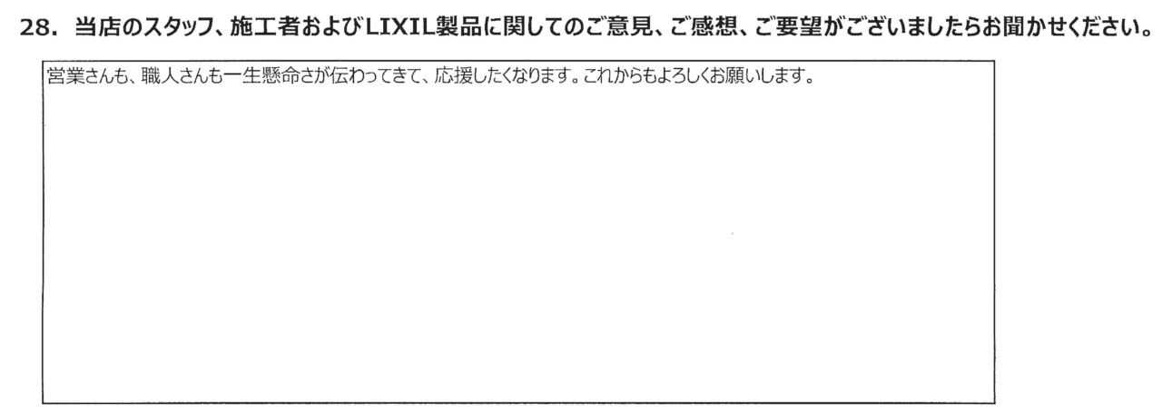 営業さんも、職人さんも一生懸命さが伝わってきて、応援したくなります。これからもよろしくお願いします。