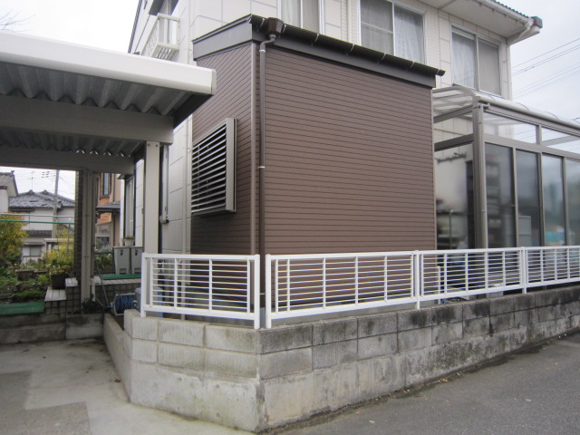 将来に備え手すりを各所に設置しました。杉材で作ったベンチは内部が収納スペースにもなっています。ベンチの上部には扇風機も設置したので夏場は湯上りに腰かけゆったり涼むことが出来ます。 (担当:長谷川)