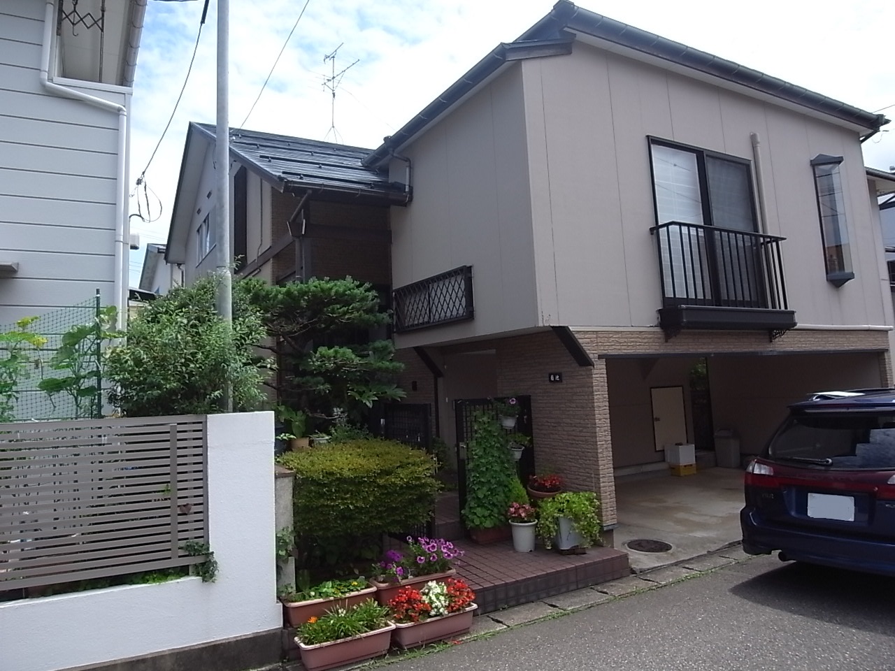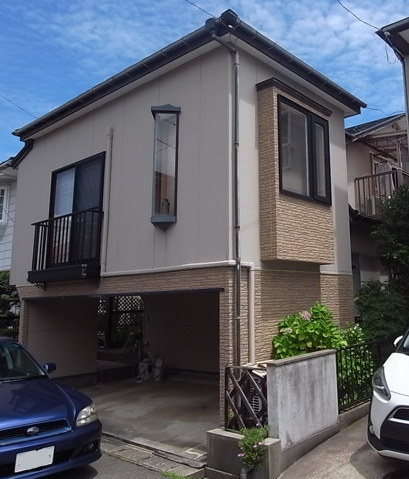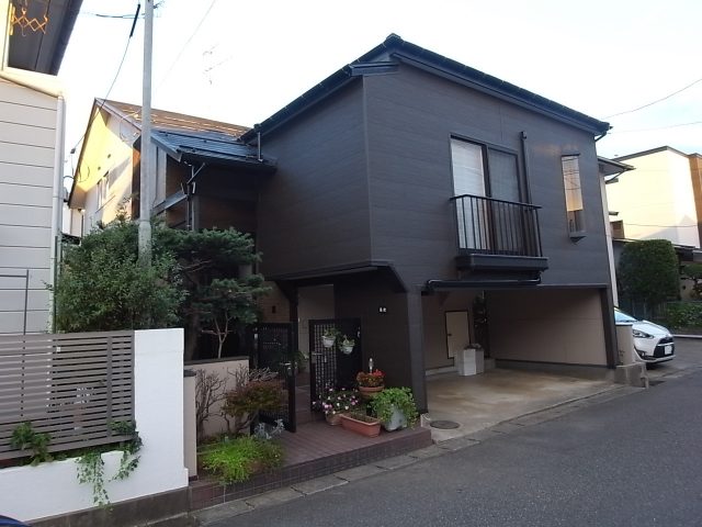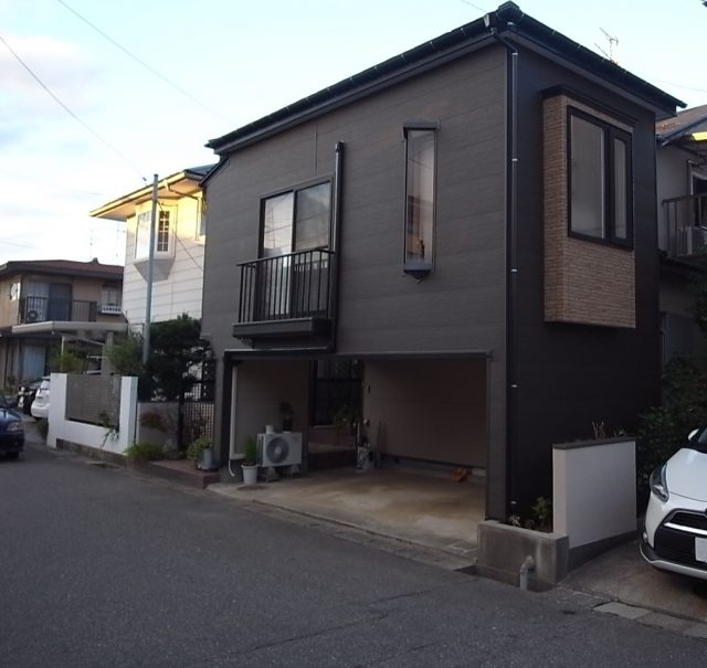 外壁の一部を金属サイディングでカバーリングしました。濃い木目調の柄がアクセントになり、とても雰囲気の良い外観になりました。