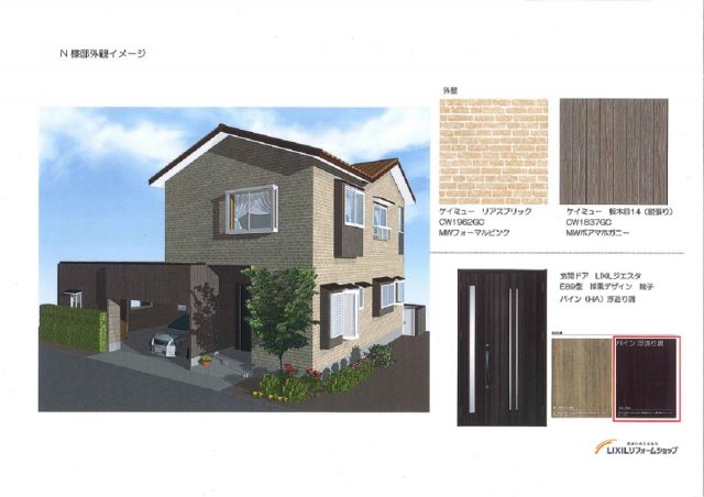 外壁全面張り替え、破風・軒天他木部塗装、雨樋取り替え、玄関ドア入れ替え、他