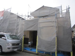 築30年以上のお宅で、外壁は一度も手を加えたことがなく外部は全体的に傷んでいました。既存の外壁は全て剥がし、内部の状態を確認後下地も直しました。破風板・軒天は塗装し、雨樋は交換、玄関ドアとシャッターも入れ替え、アルミのサンルームも設置しました。