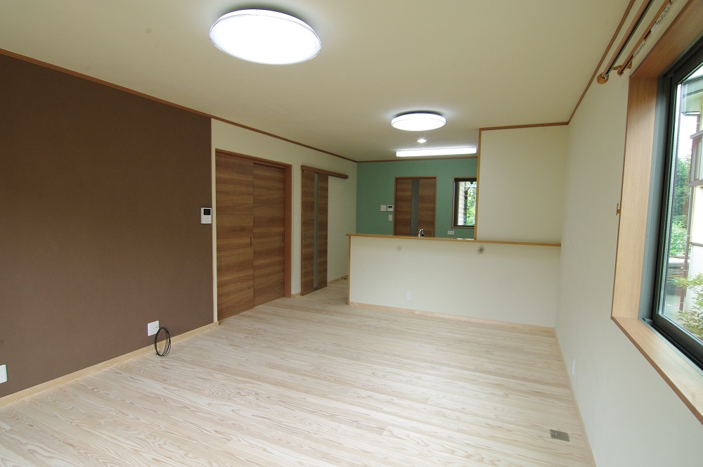 広々としたLDK。床は当社越後杉無垢材を使用。肌触りも良く体にやさしいです。