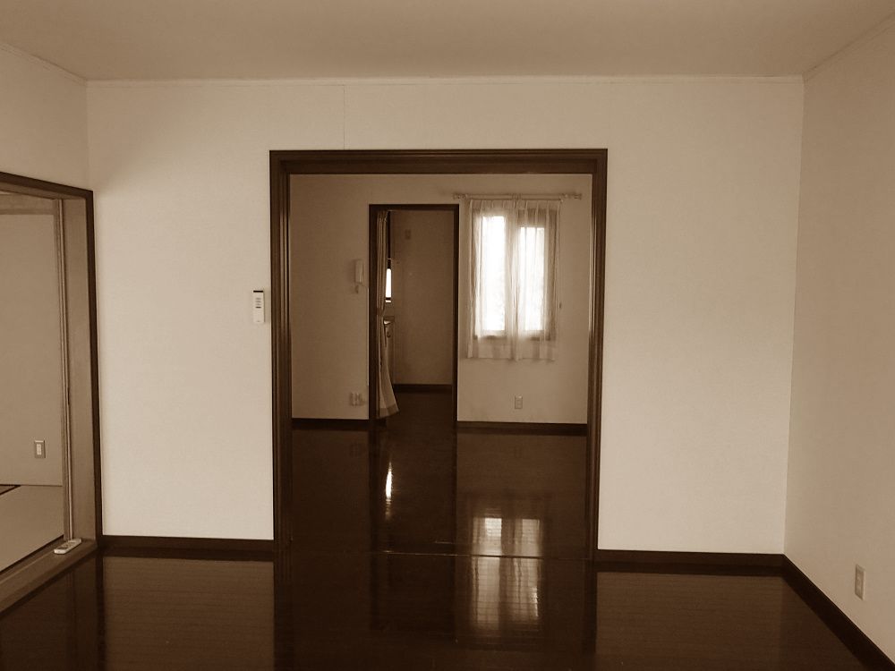 手前が寝室で大きく開けると向こうはリビング。旦那様も車椅子で楽々移動出来ます。