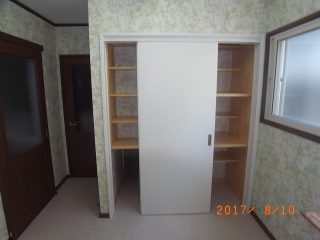 キッチン側からも使用出来ます。棚板の高さや奥行きを細かく打ち合わせして決めました。