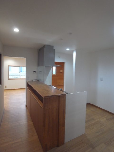 対面カウンターの高さを下げ、吊棚も撤去することによりスッキリ明るくなりました。