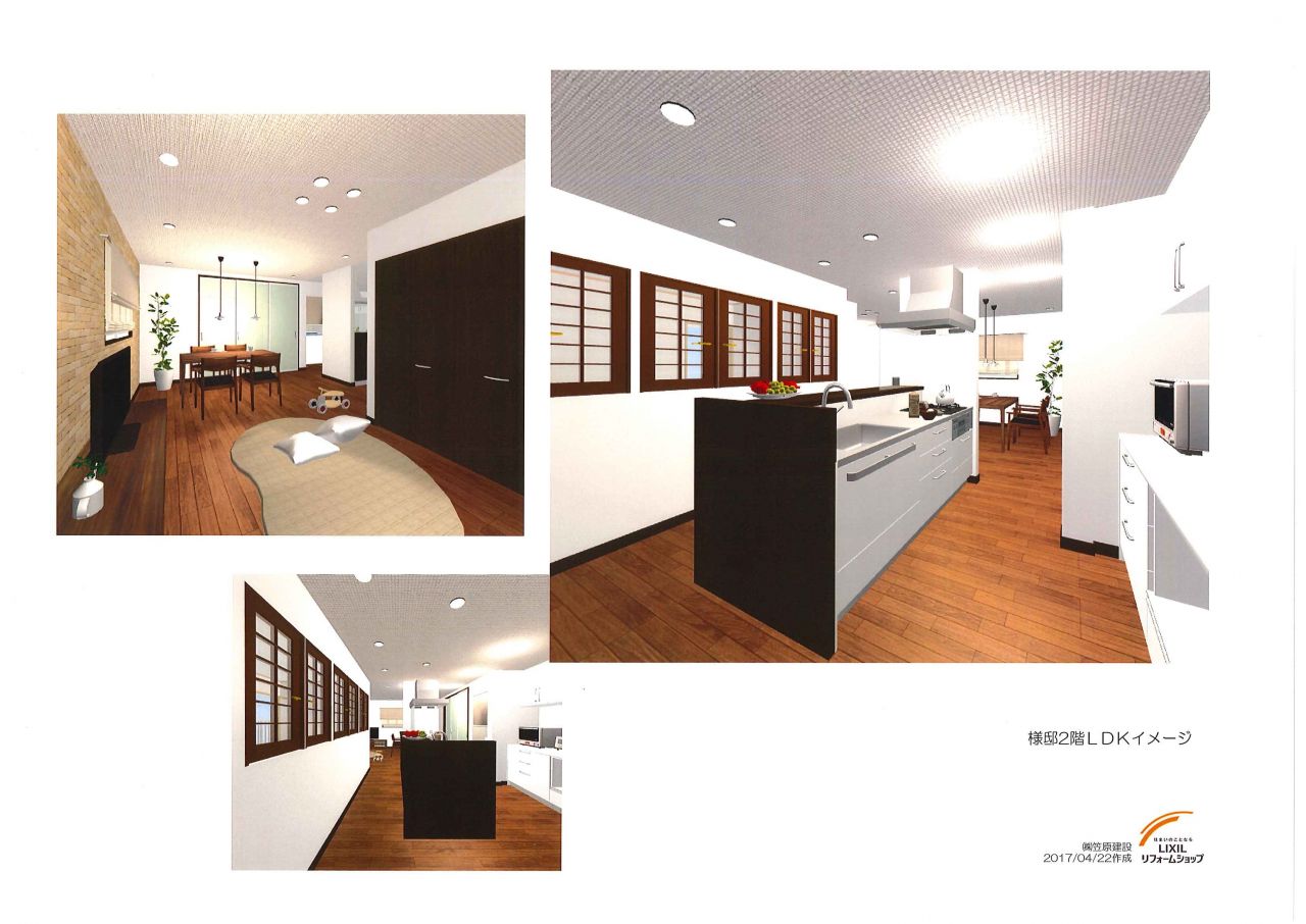 息子さんご夫婦が同居することになりご実家を二世帯住宅へリフォーム。1階LDKの大きな吹き抜けを一部ふさぎ2階へ新たにキッチンを設置しました。吹き抜けからお互いの気配も感じられ、またご両親が暮らす1階も敷居などの段差を解消し、安全で安心な二世帯住宅にうまれかわりました。