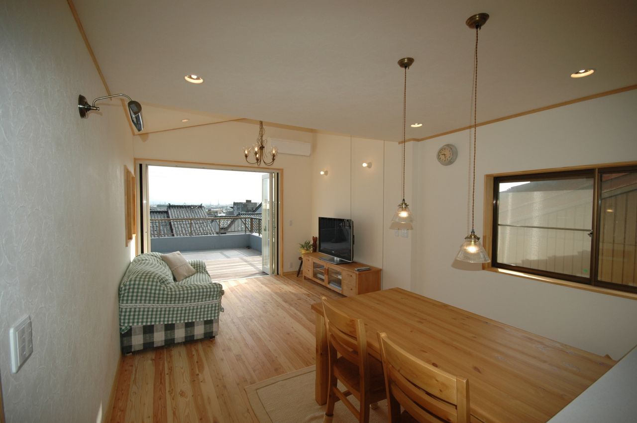 3階ならではの眺めの良さです。フロアー材は唐松(無垢材)