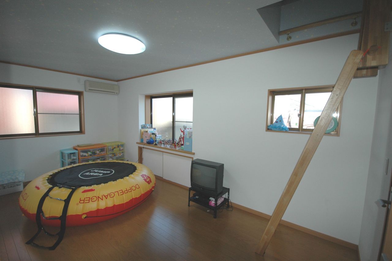 子供部屋は広いワンルーム形式にしました。お子様の成長に合わせて小屋裏をロフトとして使用できるよう