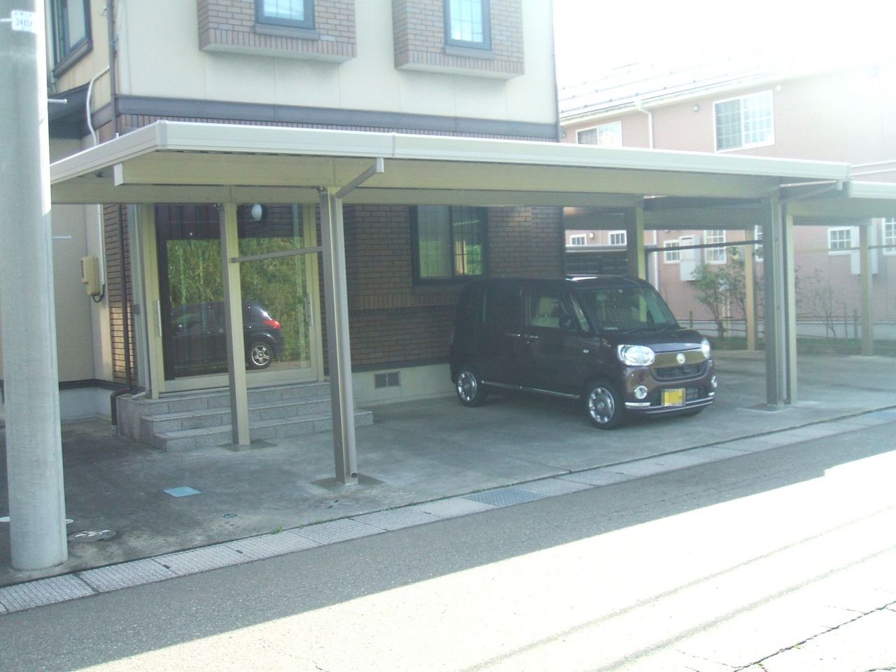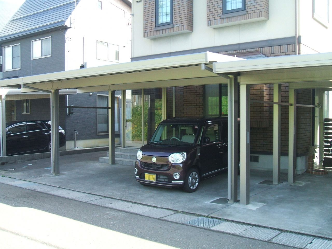 上越市にお住まいのK様。アルミカーポート2台用(LIXIL:テリオスポート)を新設させていただきました。