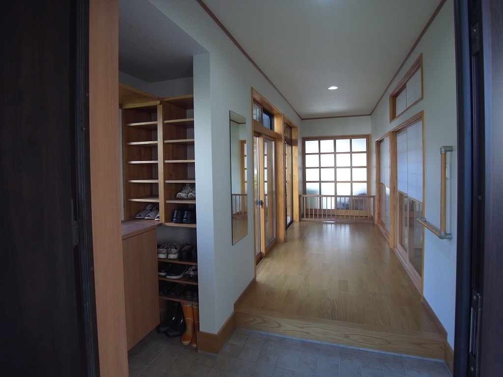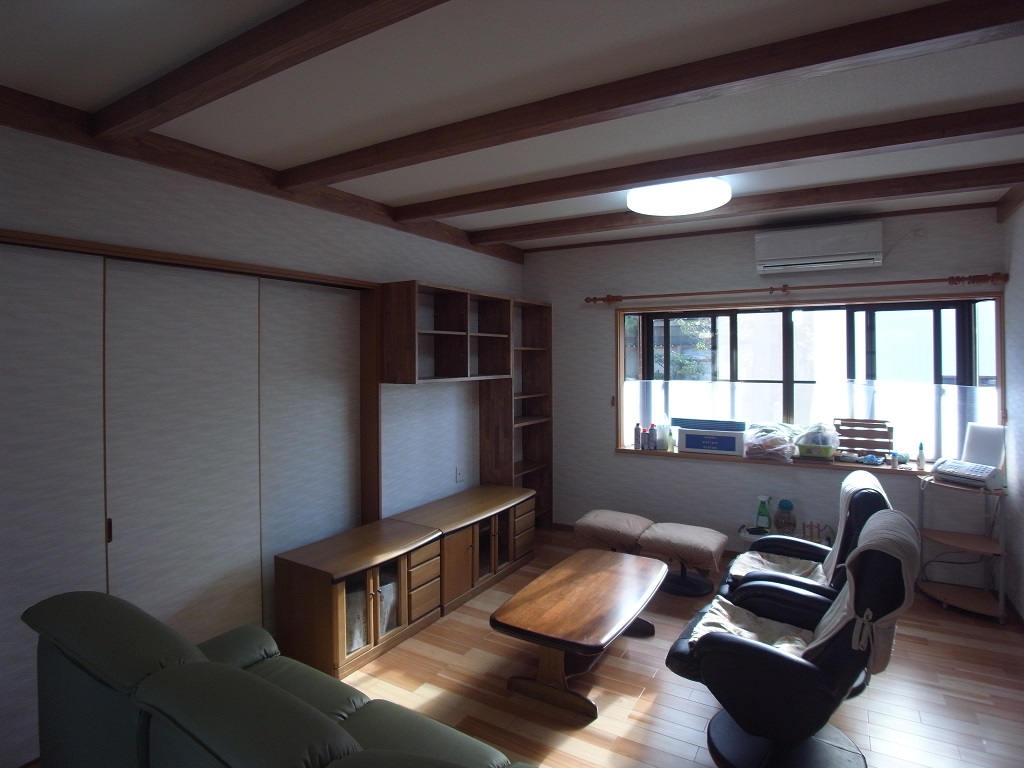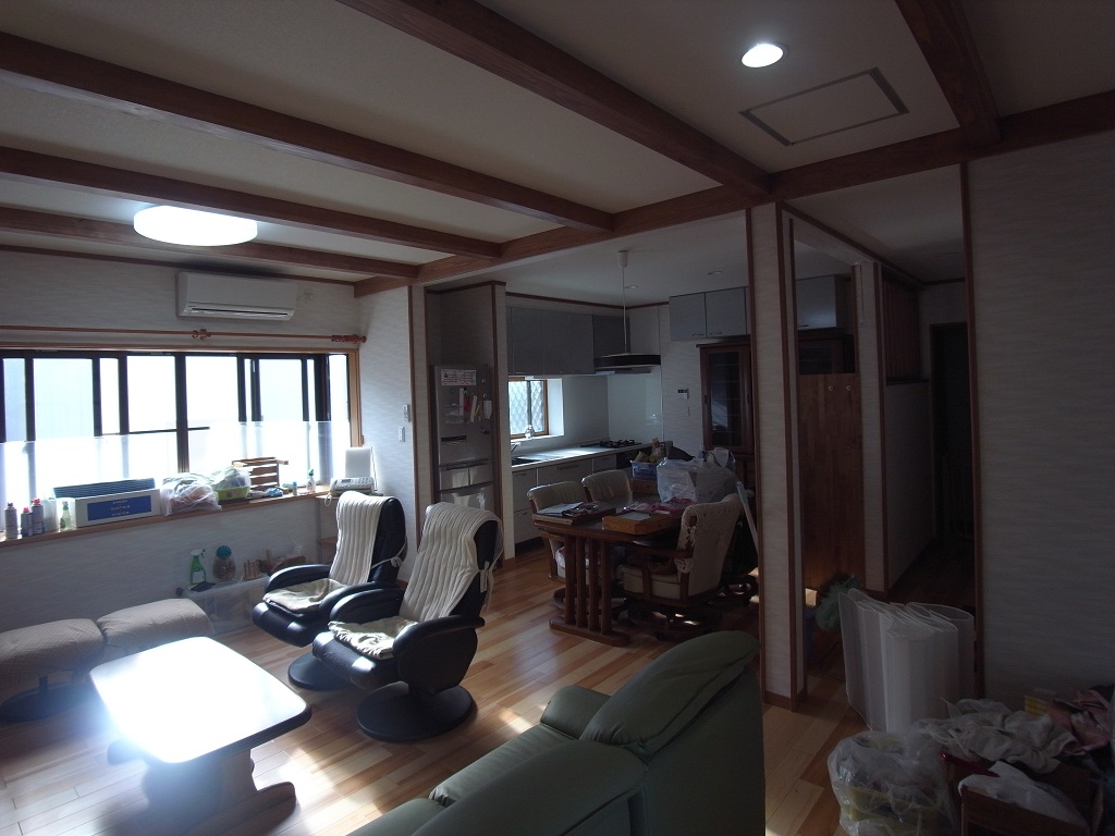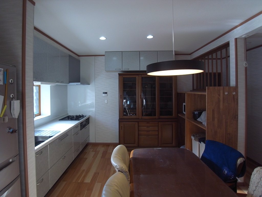 もともと対面キッチンだったLDKでしたが、あえてキッチンを壁付けに設置したことによってLDKにゆとりの空間が生まれました。玄関の位置も変更したので、玄関からLDKを中心に寝室~水まわり~物干し場と全てつなっがており、家事効率が格段に良くなったと思います。(担当:増田)